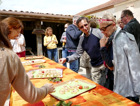 La ferme organise pour des groupes des dégustations de foie gras. Une petite réception bien sympathique sur la terrasse de la ferme. |